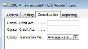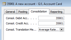 I reran the consolidation; still the same error. What was I missing? The culprit was the Consolidation tab on the on the G/L Account Card. I only had it set up correctly in the consolidation company and had missed filling out these same fields on the main company. I needed for this to be filled out exactly the same on both cards in order for this to work. I fixed the two fields, and voila!, my consolidation was back to its usual, reliable old self and finished up like a champ.