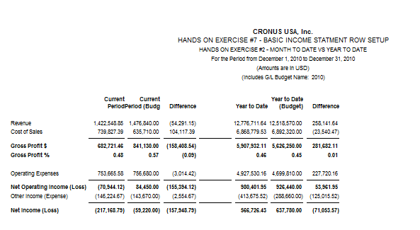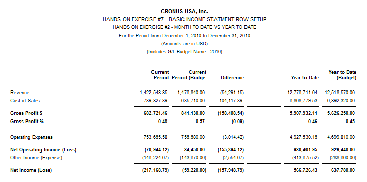If you are producing your financial statement package at the end of the month, you’ll produce your income statement, balance sheet, statement of cash flows and any other reports you use with the date filter set for the end of the month you are reporting against. When you get to this report, using comparison date, you’ve got to remember to manually switch your date filter to the end of the year, because the formulas calculate backward from the date set in order to produce the report.