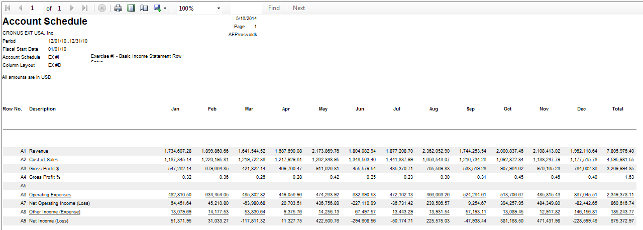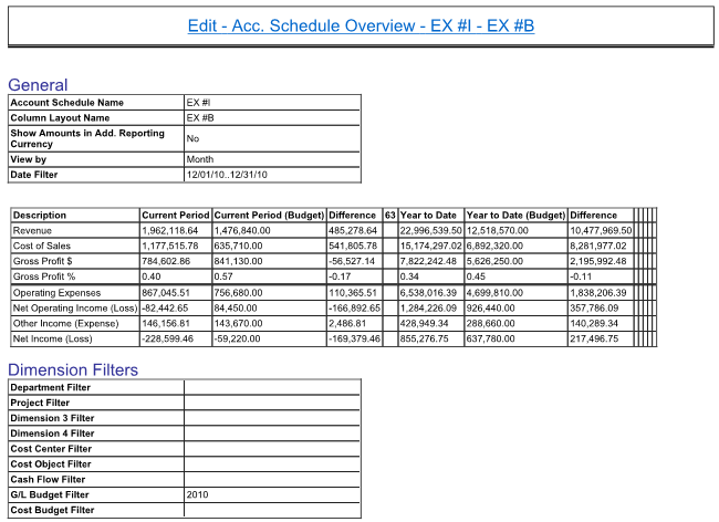 Posted: May 22, 2014 Filed under: Uncategorized Leave a commentUsing the Export to Excel function is the single most important time-saver when using NAV account schedules because once you create your first Excel workbook and set all the formatting you’ve created a “shell” that never needs to be set up or changed again. Each month, when you produce your reports for the next fiscal cycle, all you need to do is update that month’s numbers. Not only does this save you a huge amount of time, but your reports also look consistently the same month after month.