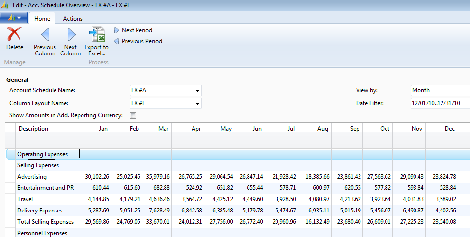 This end user view uses the column layout shown at the top of the page and the Basic Trial Balance row setup.