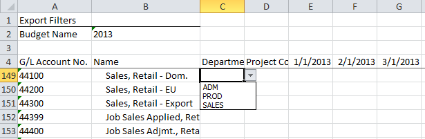 2.  If you’re using dimensions, validate your data against the provided drop downs. Make sure all budget lines that use dimensions are only using valid dimension names. Any deviation from the allowable values that already exist in NAV can cause your budget load to error out or load without balancing.